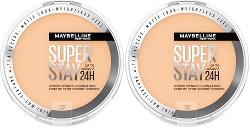 Maybelline Super Stay Up to 24HR Hybrid Powder-Foundation, Medium-to-Full Coverage Makeup, Matte Finish, 312, 1 Count (Pack of 2)