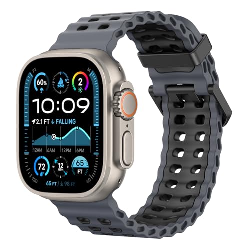 Astorgos Breathable Ocean Band Compatible with Apple Watch Ultra 3/2/1 49mm,S11/10 46mm,9/8/7 45mm,SE3/SE2/SE/6/5/4 44mm,3/2/1 42mm, Adjustable Silicone Band Breathable Sport Strap, Coal Black/Black