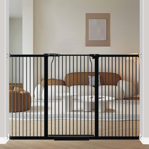 flower frail 40.5" Extra Tall Baby Gate, 65.8"-68.5" Extra Wide Long Pet Gate, No Drill Large Dog Gates Indoor, Adjustable Tension Safety Child Gate Auto Close for Stairs Walk Thru Kid or Pet Black