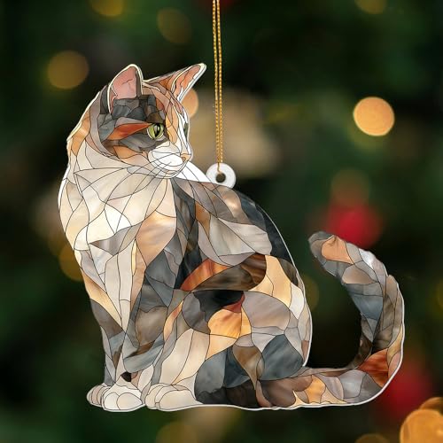 Stained Glass Cat Ornament – 2025 Christmas Tree Decoration, Handmade Animal Suncatcher for Window, for Cat Lovers & Unique Home Décor (Sun-05)