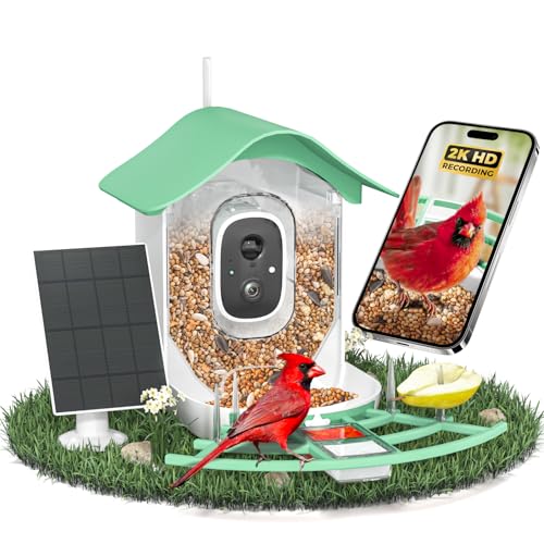 DOCOON Smart Bird Feeder with Camera, 2K HD AI Identify Birds Species, Bir d Watching Camera with Solar Panel, Instant Notifications, Ideal Present for Bir d Lover, Grass Green