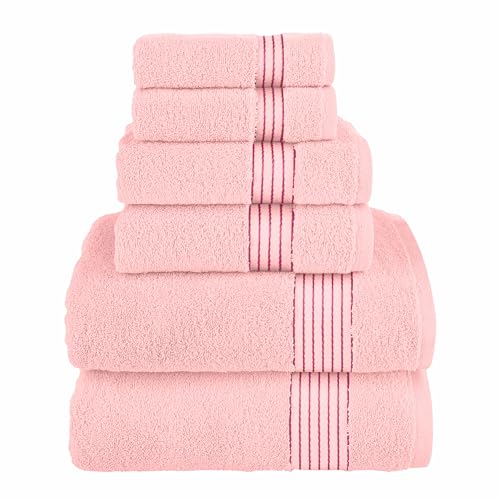 Elegant Comfort Premium Cotton 6-Piece Towel Set, Includes 2 Washcloths, 2 Hand Towels and 2 Bath Towels, 100% Turkish Cotton - Highly Absorbent and Super Soft Towels for Bathroom, Dusty Rose