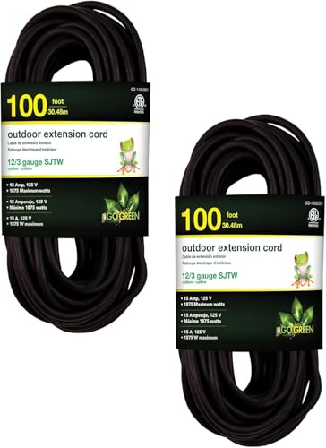 GoGreen Power Inc. (G-14000BK-2) 12/3 100' Heavy Duty Extension Cord - Black, 100ft, 2 Pack