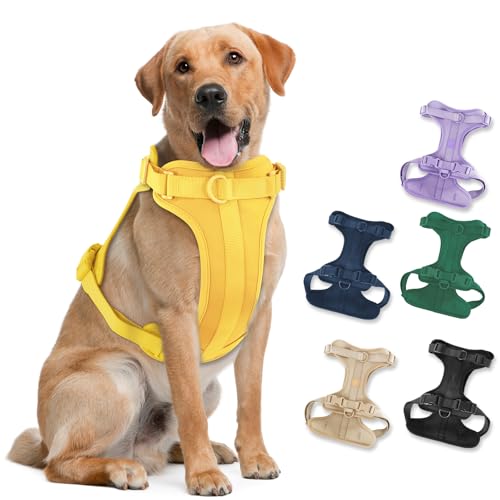 No Pull Lightweight Dog Harness: Adjustable Durable Breathable Mesh Pet Vest Harness with Soft & Comfortable Cushion, for Small Medium Large Dogs (L, Butter Yellow)