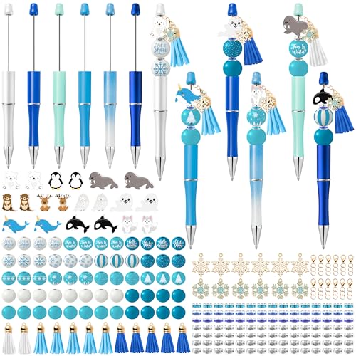 COcnny Polar Animal Beadable Pens - 12 Set Winter DIY Ballpoint Pen Making Kit with Bead Craft for Kids, Polar Bear Penguin Beaded Pen Bulk Charm Tassel Supplies for Party Women School Students Gift