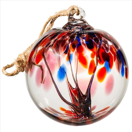 LaElvish Garden 4” Tree of Life Witch Balls, Gazing Balls Hanging Friendship Balls, Hand-Blown Glass Christmas Ornament for Window Outdoor Home Decor, Garden Decoration, Gifts for Women (Purple Blue)