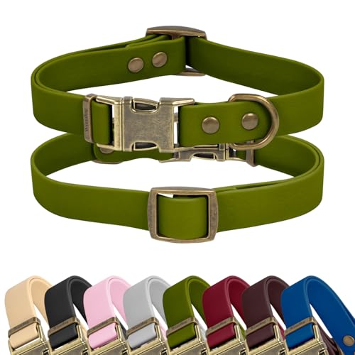 Wisedog Rubber Dog Collar for Medium Dogs - Waterproof Dog Collar with Quick Release Metal Buckle Easy to Clean Puppy Collar for Outdoor Use, Green(L:14"-22")