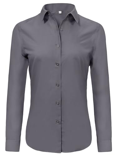 Ruisin Womens Button Down Shirts for Women Formal Work Button-Down Shirt Dress Blouses Tops Dark Grey Size XL