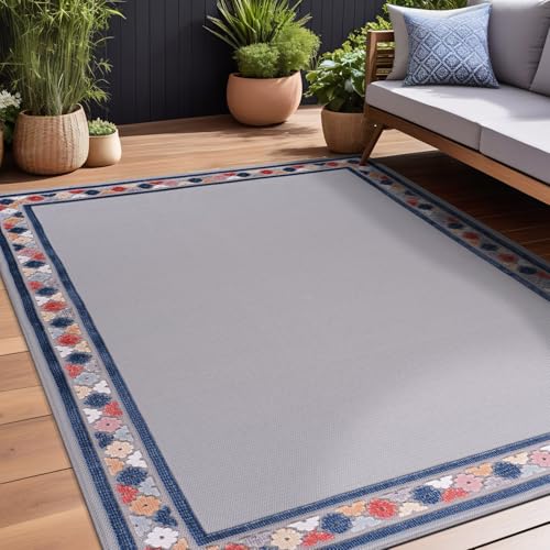 Beverly Rug Outdoor Rug 9x12 Modern Bordered Large Area Rugs for Indoor and Outdoor Patio Easy to Clean Non Shedding Living Room Porch Garden Washable Outside Carpet (9 x 12 Gray)
