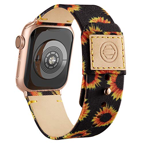 Recoppa Fabric Cloth Bands Compatible with Apple Watch 41mm 40mm 38mm, Canvas Strap with Soft Genuine Leather Lining and Snap Button for Apple iWatch Series 8/7/6/5/4/3/2/1/SE, Sunflower