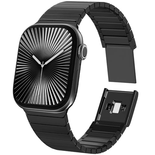 KADES Stainless Steel Band Compatible with Apple Watch Band 42mm 41mm 40mm 38mm Men, Metal Wristband with Magnetic Buckle for Apple Watch Series 11 10 9 8 7 SE 6 5 4 3 2 1,Black