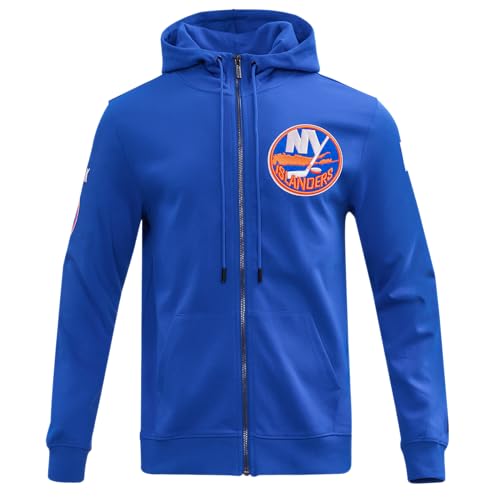 Pro Standard Mens NHL New York Islanders Classic Chenille Full Zip Hoodie Royal Blue 3Xl