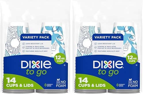 Dixie Paper Coffee Cups With Lids, 12 oz | 14 Count | Pack of 2 | Insulated | For Hot or Cold