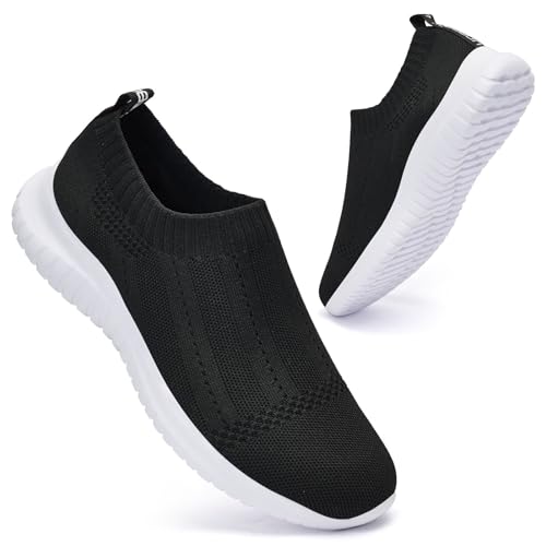 konhill Women's Slip On Sneakers Non Slip Walking Shoes Breathable Mesh Work Casual Lightweight Tennis Workout Shoes 6 Wide US B/Black,36