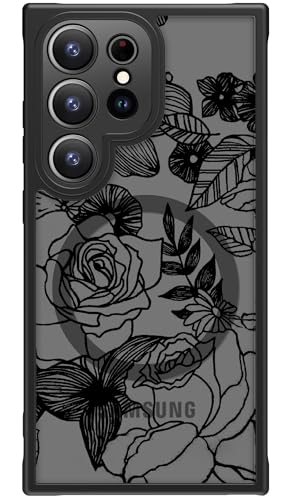 FUNMIKO for Samsung Galaxy S25 Ultra Case Wireless Charging & Military-Grade Protection - Trendy Floral Design for Women Girls, Matte Phone Cover with Shockproof Corners - Floral Sketch