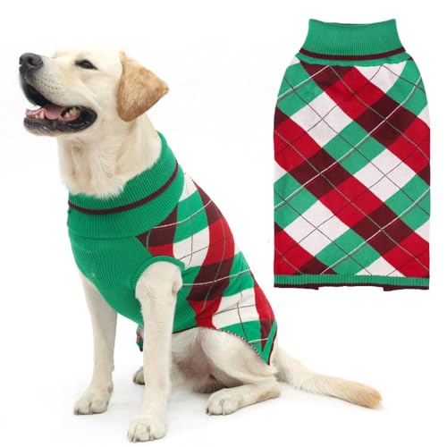KOOLTAIL Dog Christmas Sweater Pet Knitted Clothes - Classic Plaid Pull Over Turtleneck Dog Sweaters with Leash Hole Warm Dogs Winter Clothing for Small Medium Dogs Cats Puppy (Green & Red M)