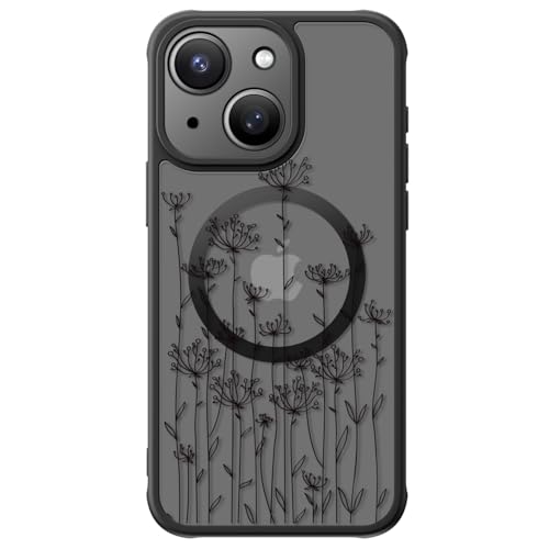 FUNMIKO for iPhone 14 Plus Case Military-Grade Protection & Wireless Charging - Trendy Floral Design for Women Girls, Non-Slip Matte Phone Cover with Shockproof Corners - Elegantly Sketched Flower