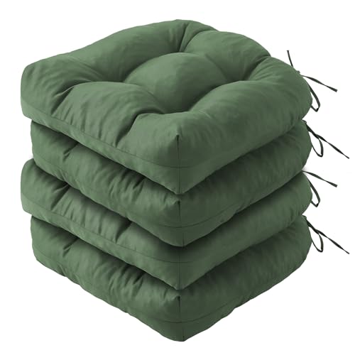 IPYNBAP Outdoor Chair Cushions Set of 4, Patio Chair Cushions with Ties, 19x19+5” Tufted Outdoor Seat Cushions, Waterproof Patio Furniture Cushions, Outdoor Dining Chair Pads, Forest Green