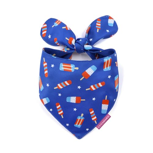 LunaMarie - Luxury Pet Birthday Bandanas -Premium & Silky Poly Fabric | 100% Handmade | Custom Shape Dual Layered (4th of July, Large)