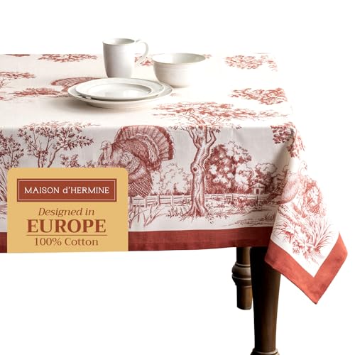 Maison d' Hermine Table Cloth Rectangle Table 100% Cotton 60 x 120 Inches Fall Tablecloth Reusable Everyday Use for Thanksgiving Christmas Decorations Dining Farmhouse Party (Holy Jouy - Red)