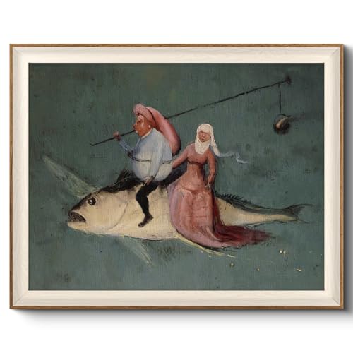 VIYYIEA Framed Wall Art for Living Room, Drive the Fish Canvas Prints, Vintage Home Decor, Funny Painting Picture, Bathroom Wall Decor Gifts for Friends or Family - 20L x 16W