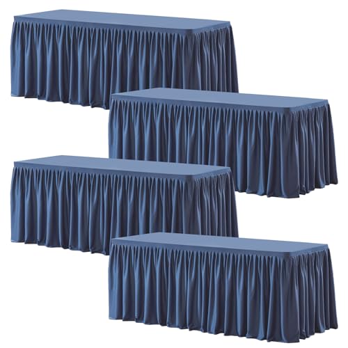 Wish Care 4 Pack Navy Blue Rectangle Table Clothes for 8 Foot Tables, Polyester Fitted Tablecloths 8ft Stretch Table Cover for Wedding, Birthday, Parties, Trade Show, Craft Show