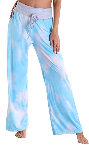 X-Image Women's Comfy Pajama Pants Tie Dye Print Drawstring Palazzo Lounge Wide Leg Pants Green-Tie Dye, XXX-Large