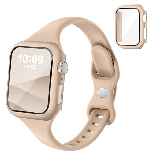 Acextro Thin Slim Band and Case Compatible for Apple Watch Bands Women Men 40mm 44mm 42mm 46mm 41mm 45mm, Silicone Sport Strap Cover and Screen Protector for iWatch Series 11/10/9/8/7/6/5/4/SE 3
