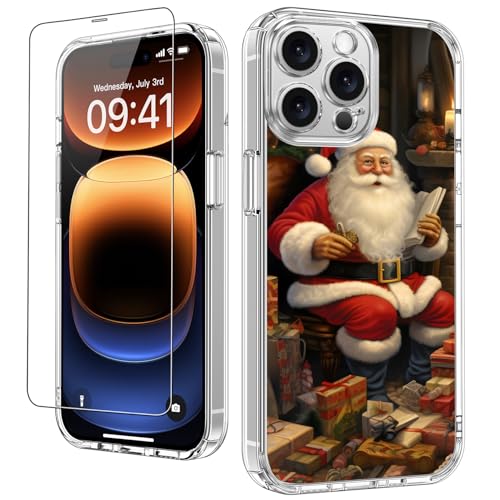 LUHOURI Christmas Phone Case for iPhone 15 Pro Max with Screen Protector - Wireless Charging - Fashionable Pattern Design - Slim Fit Shockproof Crystal Acrylic Clear for Women Girls, Santa Claus