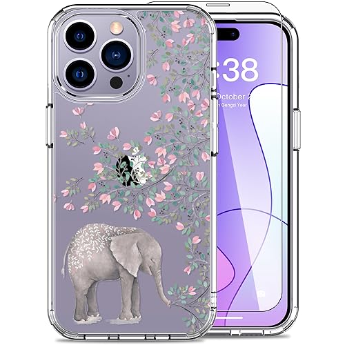 LUHOURI for iPhone 15 Pro Max Case with Screen Protector - Crystal Acrylic Clear - Fashionable Pattern Design - Wireless Charging - Slim Fit Protective Cover for Women Girls,Elegant Floral Flower