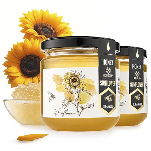 HONIGMA® Raw Sunflowers Honey | Exquisite Taste | 100% Pure | Unpasteurized | Unfiltered | Partially crystallized | 250g/8.8oz