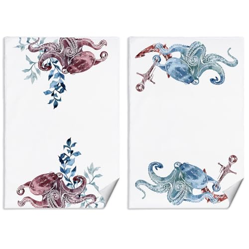 Jvpke Nautical Octopus Kitchen Towels Set of 2, Coastal Beach Hand Towels for Bathroom, Octopus Decor Dish Tea Towels for Kitchen Decor, Coastal Nautical Bathroom Decor, 16x24 Inch