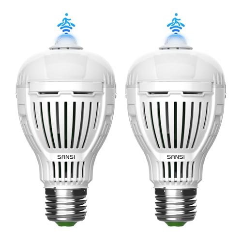 SANSI Motion Sensor LED Light Bulb A19, 100 Watt Equivalent Energy Efficient 13W 5000K Daylight 1300LM Light Bulbs, E26 Standard Base Lights for Porch Patio Stairs Front Door, 2-Pack