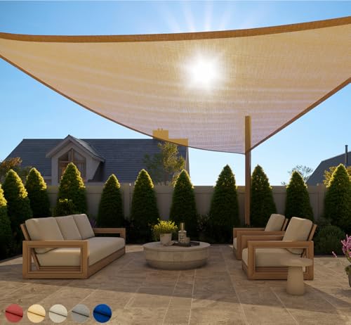 GORILLA GRIP Heavy Duty Sun Shade, UV Protection Fade Tear and Rust Resistant Rectangle Sunshade Canopy, Curved Edges Blocks Sunlight, Breathable Sail, Outdoor Patio, Lawn Garden, 16x16x16, Sand