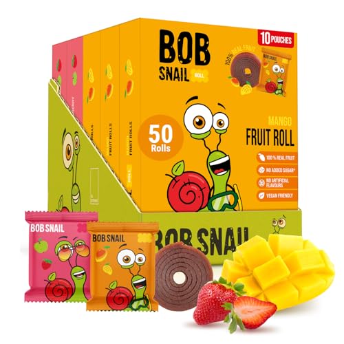 Bob Snail Exotic Mix Fruit Roll Ups – Healthy Sweets, Real Dried Fruits Snacks, No Added Sugar, Vegan, Nut Free, Candy for Adults and Kids – Flavour 50 pcs, 500g (Mango & Strawberry)
