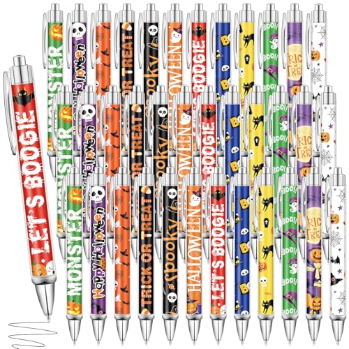 Dispowreath 48 Pcs Halloween Pens Bulk Trick or Treat Retractable Gel Ink Ballpoint Pens Horror Monster Skull Pumpkin Spooky Ghost Gifts for School Office Writing Stationery Supplies Fall Party Favors