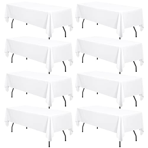 8 Pack White Polyester Tablecloth 60 x 126 Inch Table Cloth for 8 Foot Rectangle Table, Stain and Wrinkle Resistant Washable Polyester Fabric Table Cover for Wedding/Buffet Party/Events