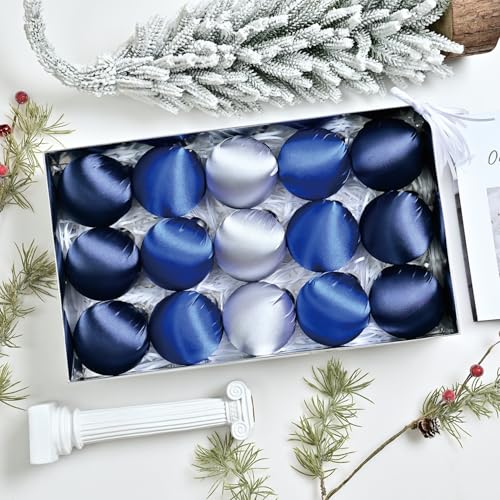 Christmas Ball Ornaments, 15 Pcs Ornaments with Velvet, Multicolor Xmas Decorations for Christmas Tree Holiday Decor (Blue & Indigo)