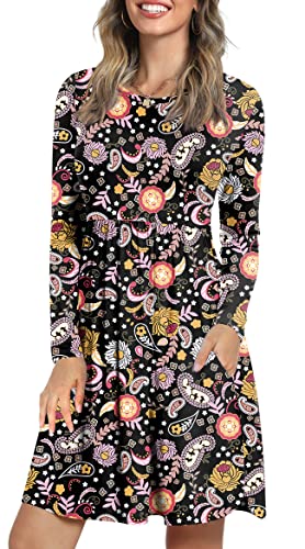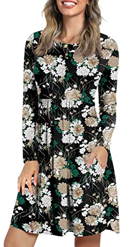 LONGYUAN 2025 Women's Long Sleeve Dresses Casual Fall Sundress Hide Belly Swing Dress Trendy Sundress Fl M