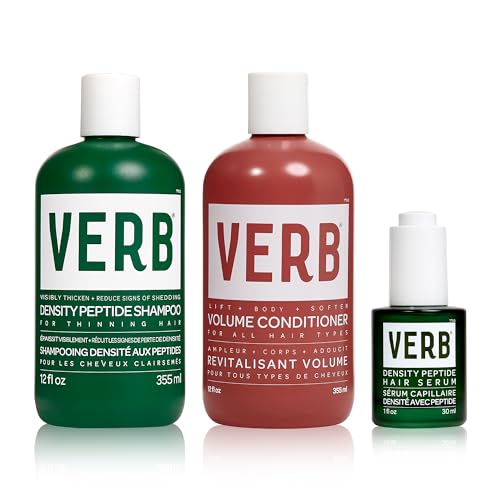 VERB Density Peptide Shampoo 12 fl oz + VERB Density Peptide Serum, 1 fl oz + VERB Volume Conditioner 12 fl oz- - Visibly Thicken + Reduce Signs of Shedding + Condition and Lift Flat Hair