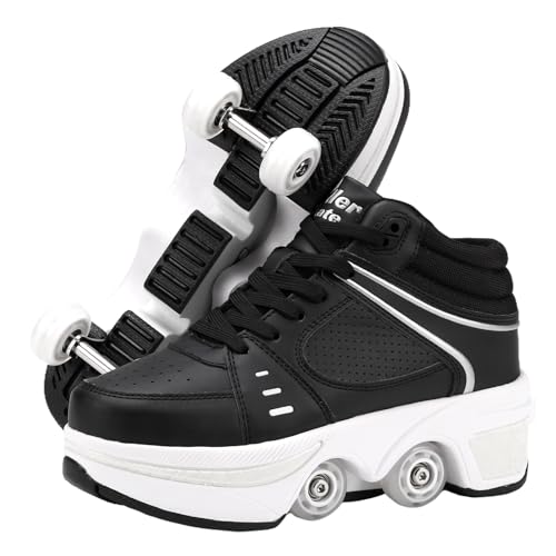 Roller Skate Shoes for Girls, Kids, Women, Men,Double-Row Skating Shoes,Retractable Wheels Sneakers,Adjustable Parkour Roller Skates,Deformation Sneakers Outdoor (HG, 5 Women/4 Men/3 Big Kid)