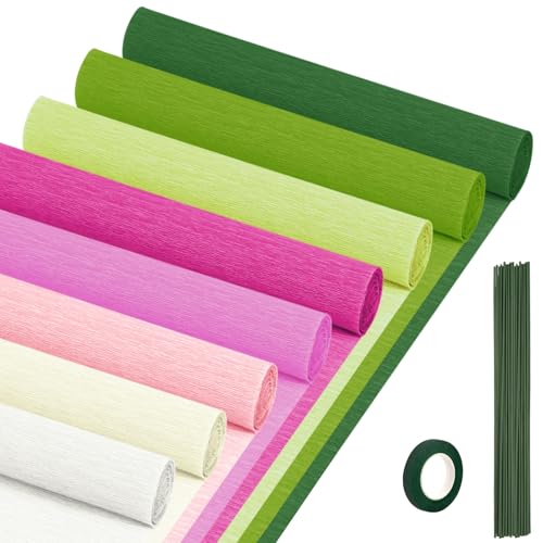 Crepe Paper Streamers 8 Rolls, 10 x 98Inch 8 Pink&Green Colors Crepe Paper Sheets for DIY Gift Colourful Paper Flower Wrapping Paper Crafts Birthday Wedding Holiday Party Decorations