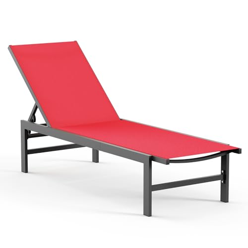 Vexwalx Outdoor Lounge Chairs for Pool, Aluminum Chaise Lounge Chairs with 5-Position Recliner, Patio Lounge Chair for Backyard, Poolside, Deck, Lawn, Red