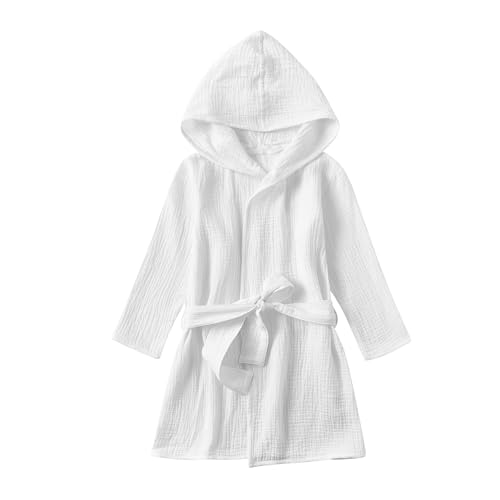 TADO MUSLIN Toddler Bathrobe, Lightweight Cover-Up for Kids Soft and Breathable Organic Cotton Robe for Baby, Boys& Girls Hooded Towel, 4-6T, White Robes