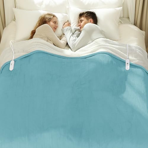 VELLUBAM Queen Size Electric Blanket 84" x 90" - Flannel Sherpa Washable Heated Blanket with Dual Control, 5 Heating Levels & 10 Hours Auto Off, Heating Blanket with Overheat Protection for Home(Blue)