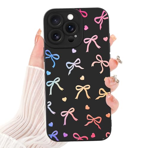 LEOMAKRON Case for iPhone 15 Pro Max,Cute Colorful Heart Bow for Women Girls,Aesthetic Soft Slim Shockproof Protective Anti-Scratch TPU Bumpers Cover,Black