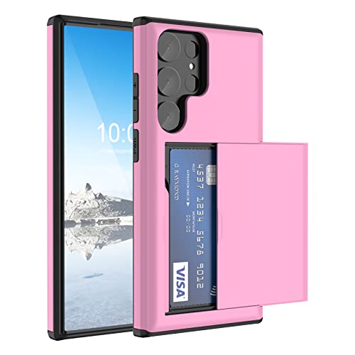 SQMCase Compatible with Galaxy S23 Ultra Case Wallet with Credit Card Holder ID Card Slot Shockproof Hard PC TPU Phone Case Slide Flip Protective Cover for Samsung Galaxy S23 Ultra 2023 (Rose Red)