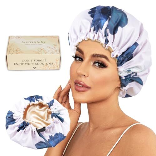 Luvruitaky Shower Caps for Women Waterproof Reusable… (Blue Flower)