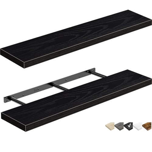 QEEIG Floating Shelves for Wall 35.4" Long - Wall Mounted Shelf Bathroom Kitchen Living Room Bedroom Farmhouse Home Decor Display Bookshelf Large 35.4 x 9.3 inch Set of 2, Black (008-90B)