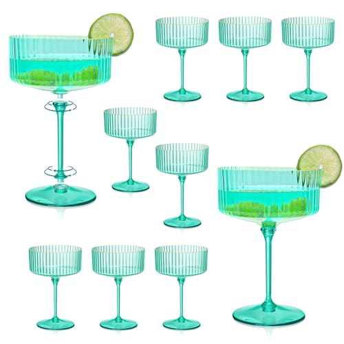 XUWAIDSGN 12 Pcs Champagne Martini Glasses 9 Oz with Gilded Removable Gold Rim Coupe Glasses Teal Martini Glasses Plastic Mimosa Vintage Coupe Set For Wedding Anniversary (12, Teal)